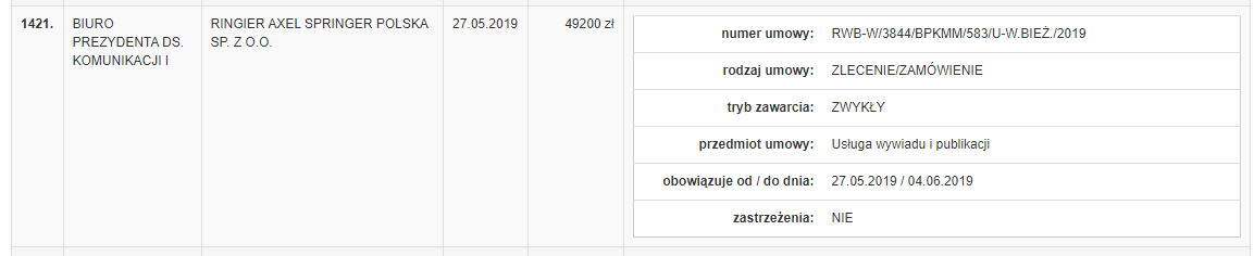 Zgodnie z treścią ujawnionego dokumentu, przedmiotem całego zobowiązania miało być przeprowadzenie “usługi wywiadu” (! – red.) z prezydent Gdańska w ramach kilkuminutowej przejażdżki z dziennikarzem portalu. Emisja wywiadu miała mieć miejsce w internecie w dniu 4 czerwca 2019 roku. Za całe przedsięwzięcie gdański ratusz musiał zapłacić wydawcy “Onetu”, firmie Ringier Axel Springer Polska, 49 200 złotych.