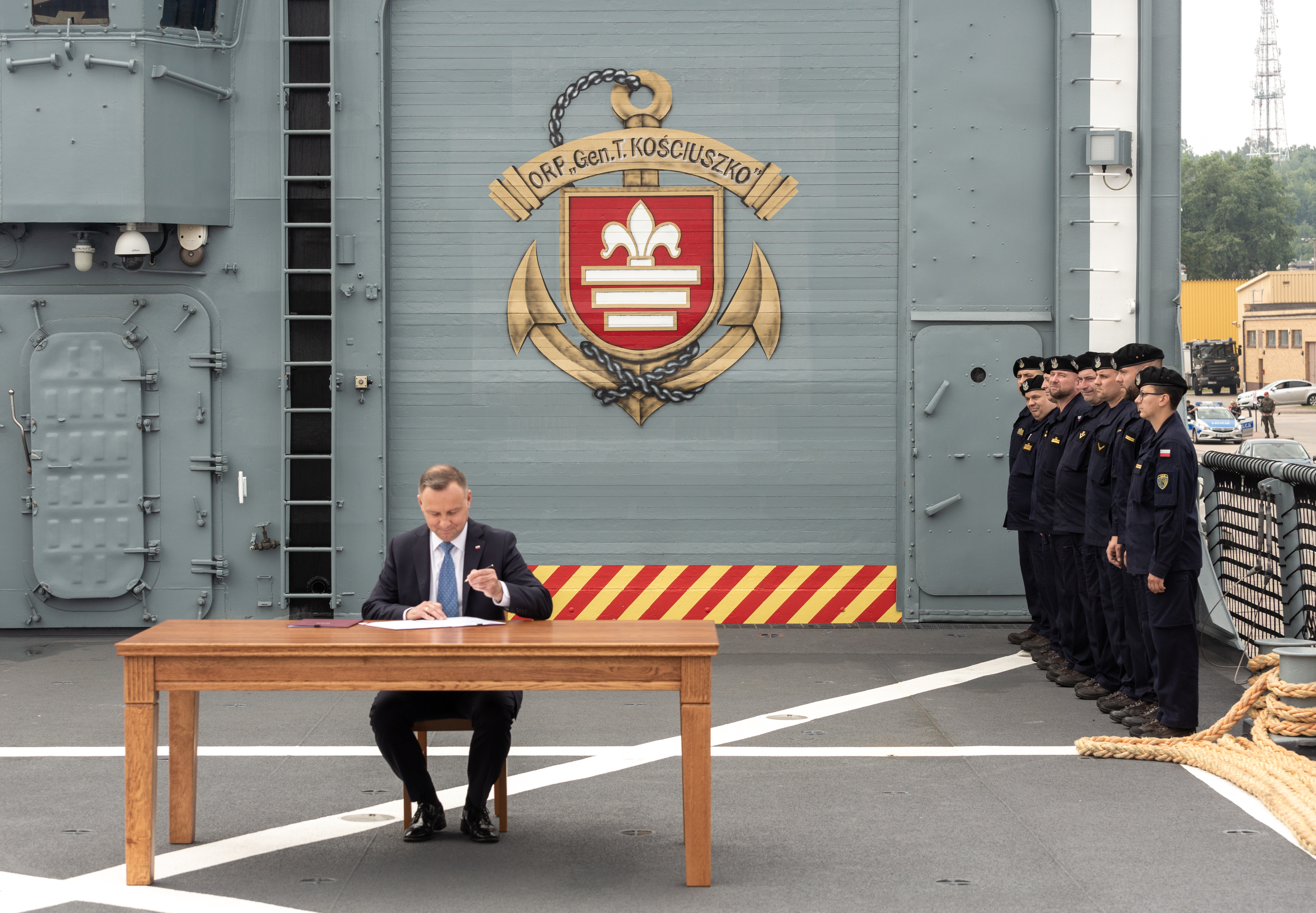 Prezydent podpisał ustawy ws. ratyfikacji akcesji Szwecji i Finlandii do NATO w Porcie Wojennym w Gdyni, na fregacie ORP T. Kościuszko. Wcześniej, czyli w środę ustawy przyjął Senat, a Sejm uchwalił je 7 lipca.