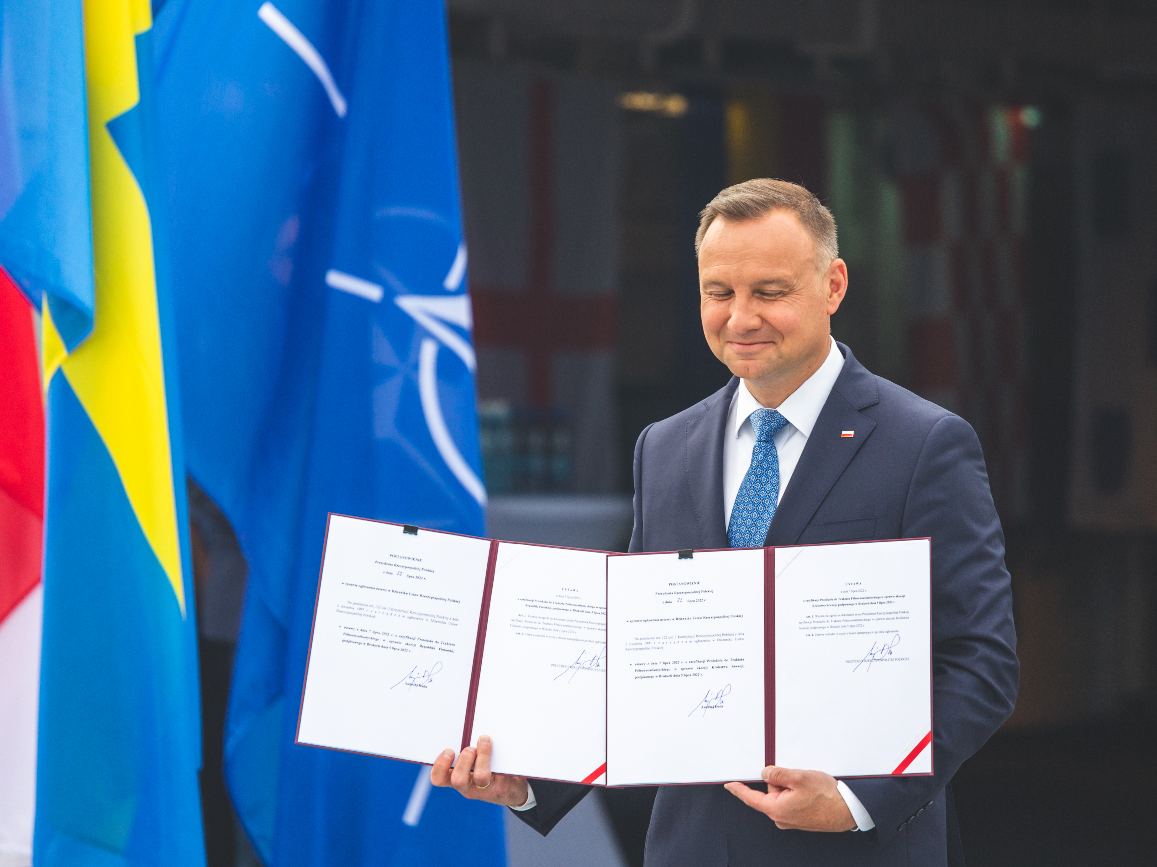 Prezydent Andrzej Duda podpisał w piątek w Gdyni ustawy upoważniające go do ratyfikacji akcesji Szwecji i Finlandii do NATO.