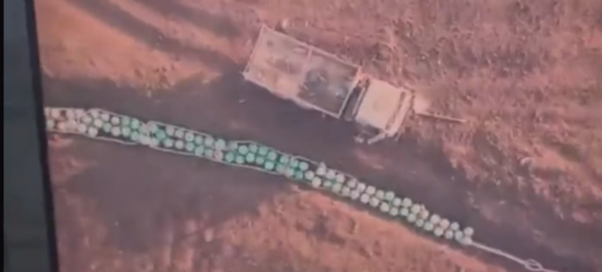 Wczoraj w internecie pojawiło się nagranie pokazujące, jak Rosjanie zakopują w ziemi tajemnicze seledynowe pojemniki w kształcie kuli. Obok nich leżał gruby sznur, który wyglądał jak saperskie ładunki wybuchowe. Szybko ustalono, że nagranie z powietrza wykonano w Zaporożu. Obudziło to obawy, że te pojemniki zawierają broń chemiczną, którą Rosjanie chcą zdetonować, gdy w pobliżu znajdą się ukraińskie wojska.