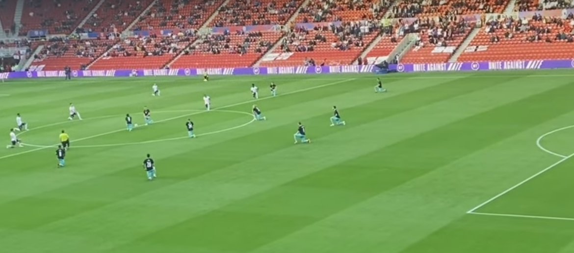 Gest klękania przed meczami został zapoczątkowany przez byłego amerykańskiego futbolistę Colina Kaepernicka. Miał to być protest przeciwko rzekomemu rasizmowi amerykańskiej policji i rzekomym prześladowaniom, jakie spotykają amerykańskich Murzynów. Fakt, że klękał podczas hymnu, wywołał ogromne kontrowersje, ale inni sportowcy szybko zaczęli iść w jego ślady. Jego pomysł pożyczyli sobie także brytyjscy piłkarze, co często budziło bardzo negatywne reakcje ze strony fanów.