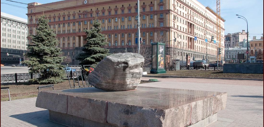 Kamień Sołowiecki, upamiętniający ofiary stalinowskiego terroru, znajduje się tuż obok gmachu Federalnej Służby Bezpieczeństwa Rosji (FSB) – spadkobierczyni radzieckich służb: KGB i NKWD. Stanął tam w 1990 roku. Przywieziono go z Wysp Sołowieckich – archipelagu na Morzu Białym, na którym w połowie lat 20. XX wieku powstał pierwszy w ZSRR łagier dla więźniów politycznych.